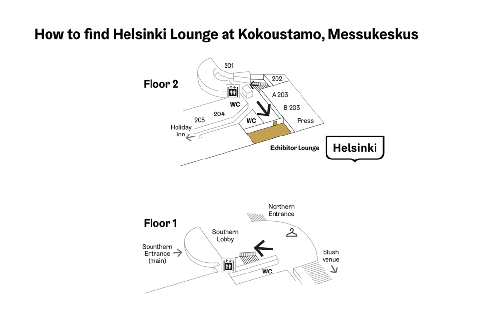 The Helsinki Lounge is located inside the Slush event venue; however, you do not need a ticket to enter. The venue is wheelchair accessible.